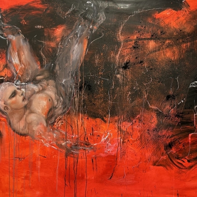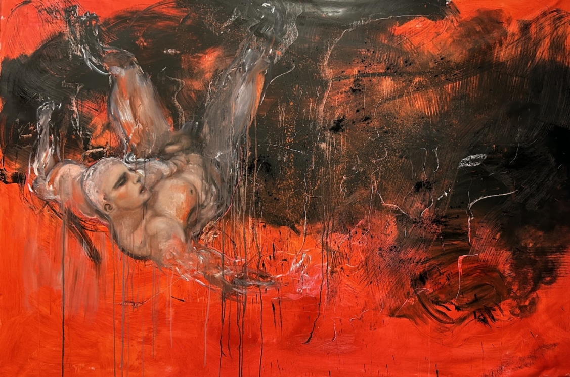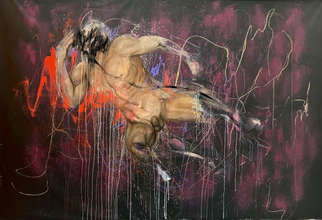 Working primarily with oil, Clare’s paintings examine the gaze and emotional tension through contorted, often vulnerable bodies that navigate a metaphysical void. Her current body of work draws from mythological figures such as Prometheus and Icarus to explore existential encounters—anguish, ambition, grief—and questions how masculinity, emotion and struggle are performed and perceived.