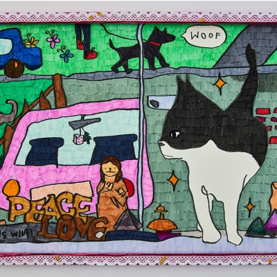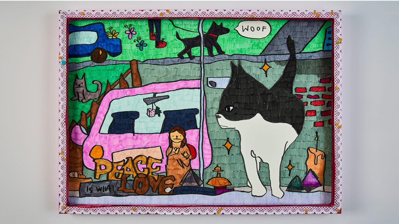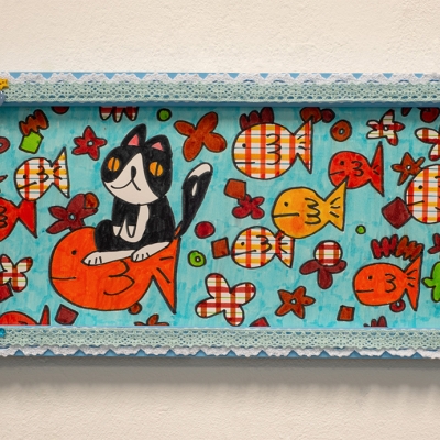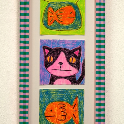 Embracing a raw and playful style, she seeks to capture the innocence and spontaneity that often slip away with age. Through sewing, printmaking and mixed media illustrations, Zheshi’s creations invite viewers to rediscover the world through a childlike lens—one filled with curiosity, tenderness and wonder.