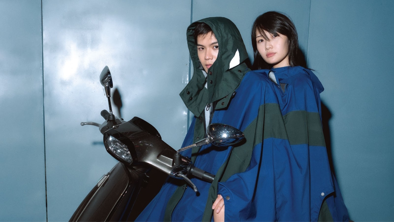His latest collection reimagines rainwear for motorbike commuters—modular, functional and rooted in everyday culture. The garments are designed to support young creatives who chase ideas through sun and storm, helping them move freely, stay dry and show up as themselves—wherever the day takes them.